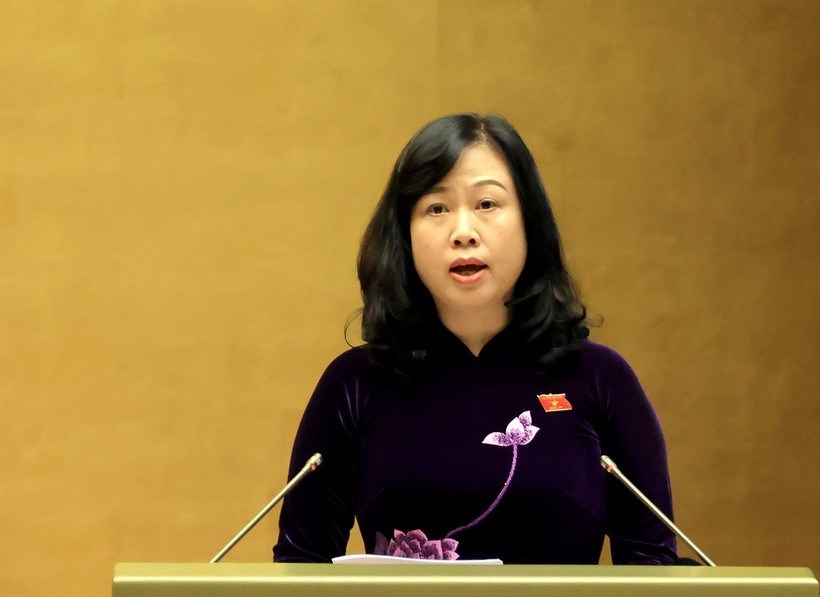 Bộ trưởng Bộ Y tế Đào Hồng Lan trình bày tờ trình về dự thảo Luật Dân số (Nguồn: Internet)
