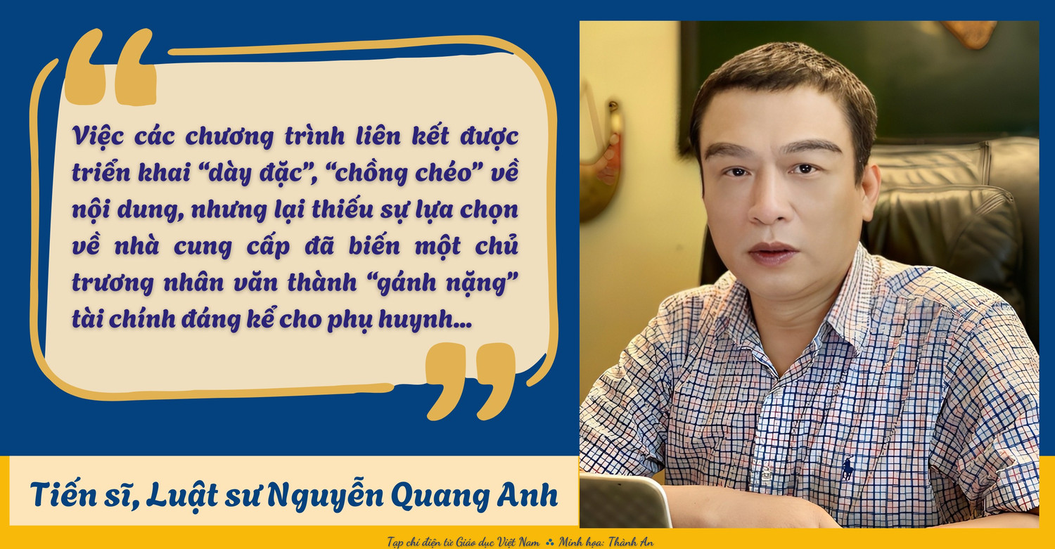 Trao đổi với phóng viên Tạp chí điện tử Giáo dục Việt Nam, Tiến sĩ, Luật sư Nguyễn Quang Anh - Đoàn Luật sư thành phố Hà Nội nhìn nhận, hoạt động liên kết giáo dục, về bản chất, là một xu thế tất yếu và tích cực trong bối cảnh hội nhập. Tuy nhiên, cách thức triển khai hiện nay với những dấu hiệu thiếu minh bạch đang làm “biến dạng” chủ trương này, gây băn khoăn, thậm chí lãng phí nguồn lực.