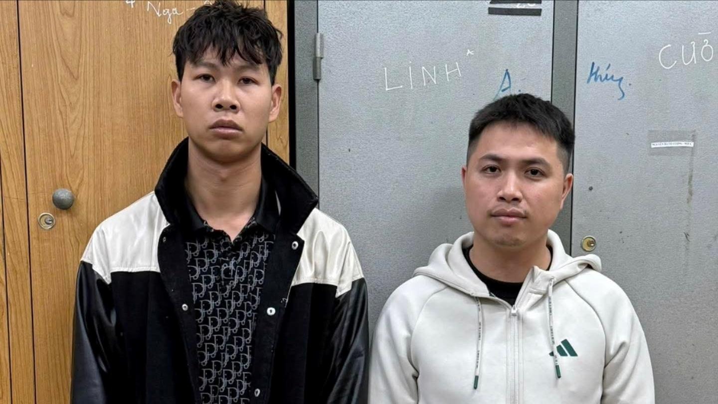 Đối tượng Nguyễn Minh Công và Vương Duy Hiển tại cơ quan Công an (Ảnh: Công an thành phố Hà Nội).