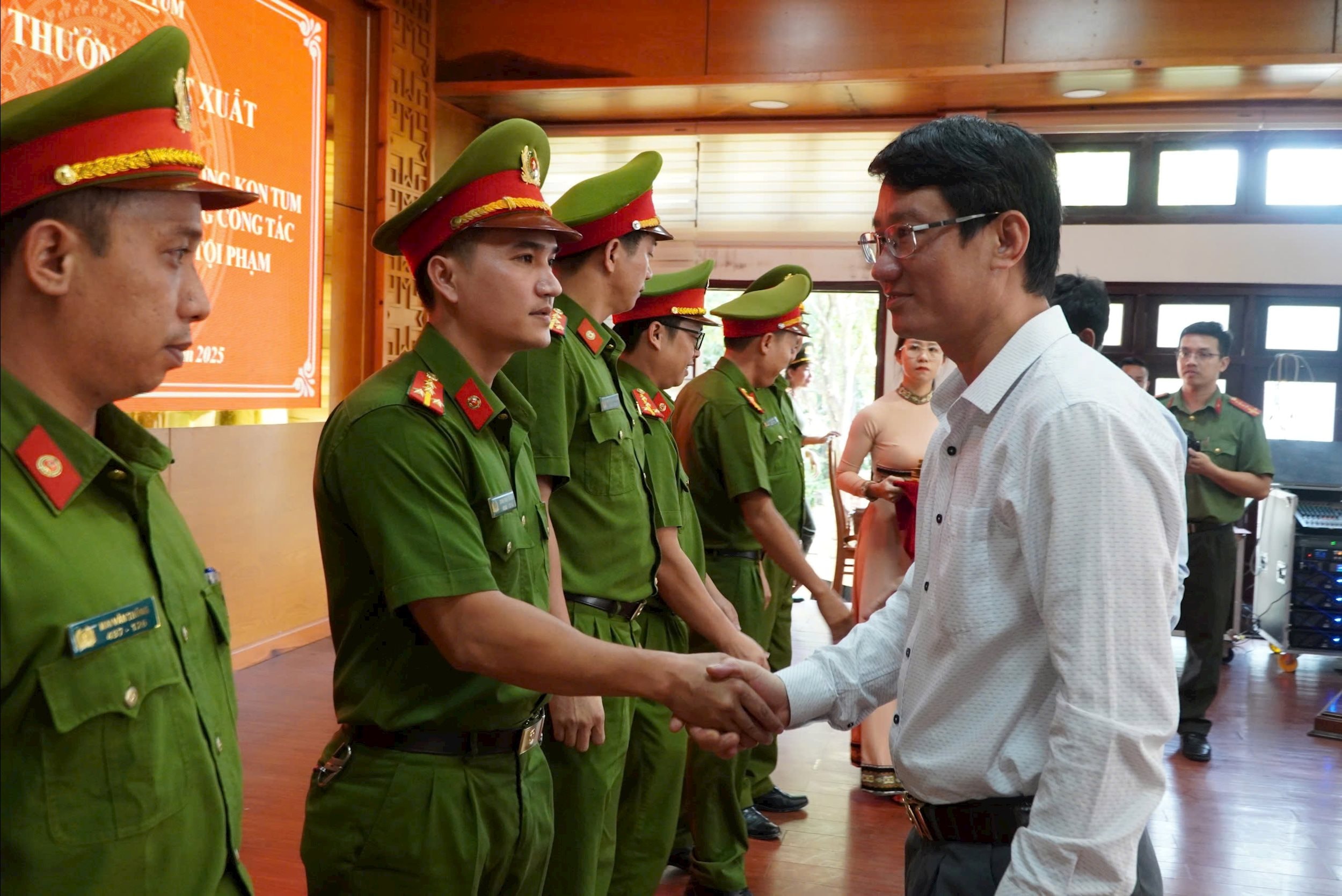 Ngày 2/10, UBND phường Kon Tum đã tổ chức gặp mặt động viên, trao thưởng đột xuất cho tập thể Công an phường và 5 cá nhân có thành tích xuất sắc trong điều tra, phá nhanh vụ trộm dây cáp ngầm điện trung thế, góp phần bảo đảm an toàn lưới điện và tính mạng người dân.