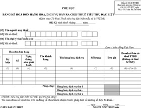 Mẫu bảng kê hóa đơn hàng hóa, dịch vụ bán ra chịu thuế tiêu thụ đặc biệt