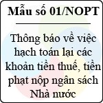 Thông báo về việc hạch toán lại các khoản tiền thuế, tiền chậm nộp, tiền phạt nộp NSNN mẫu số 01/NOPT (Ban hành kèm theo Thông tư số 156/2013/TT-BTC ngày 6/11/2013 của Bộ Tài chính).