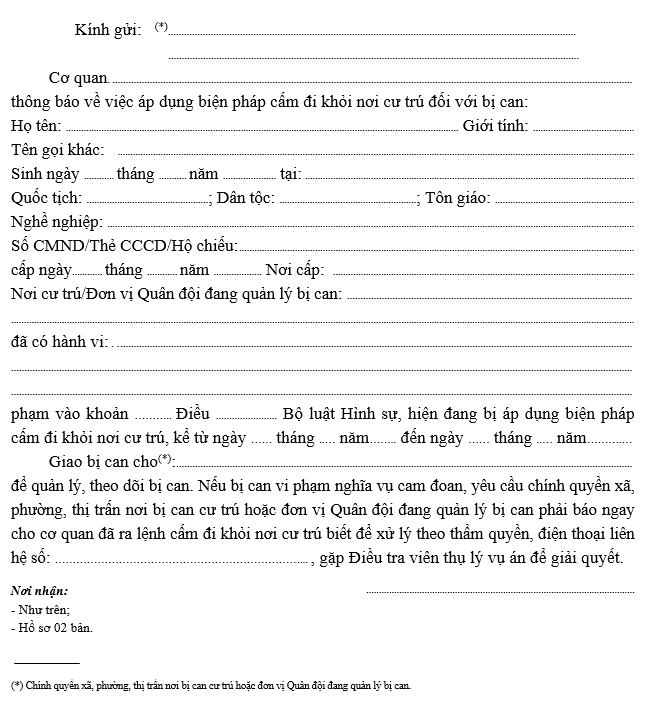 Về việc áp dụng biện pháp cấm đi khỏi nơi cư trú