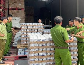 Sáng 2/4, Đội Quản lý thị trường (QLTT) số 17 và Đội QLTT số 11 - Cục QLTT Hà Nội phối hợp với Phòng An ninh kinh tế (Công an TP Hà Nội) bắt quả tang cơ sở sản xuất nước giặt, nước rửa chén bát, tinh dầu thơm có dấu hiệu giả mạo nhãn hiệu Dnee của Thái Lan.