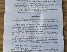 (THPL) – Sau loạt bài viết của Thương hiệu & Pháp luật theo đơn thư bạn đọc, Giám đốc Sở Nông nghiệp và PTNT Mai Văn Minh đã ban hành quyết định thu hồi và hủy đối với hai quyết định số 39/QĐ-SNN và quyết định số 40/QĐ-SNN ngày 21/01/2021 chưa đúng với pháp luật hiện hành.