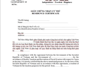 Giấy chứng nhận cư trú (Residence certificate) mẫu số 07/HTQT (Ban hành kèm theo Thông tư số 156/2013/TT-BTC ngày 6/11/2013 của Bộ Tài chính).