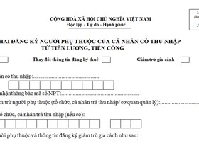 Tờ khai đăng ký người phụ thuộc của cá nhân có thu nhập từ tiền lương,tiền công mẫu số 20-ĐK-TCT (Ban hành kèm theo Thông tư số 95/2016/TT-BTC ngày 28/6/2016 của Bộ Tài chính).