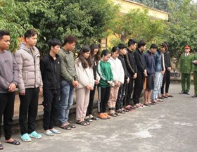 Ngày 26/1, thông tin từ Công an tỉnh Hà Nam cho biết, Công an thị xã Duy Tiên, tỉnh Hà Nam đã điều tra và bắt giữ 15 đối tượng do Lê Tiến Quyền (29 tuổi, trú tại xã Hoàng Tây, huyện Kim Bảng, tỉnh Hà Nam) cầm đầu về hành vi lừa đảo chiếm đoạt tài sản.