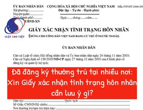 Chị Hương (Hà Nội): “Chào luật sư, trước đây tôi đăng ký thường trú tại Nam Định. Năm 2019, tôi đăng ký thường tại Hà Nội và sinh sống cho đến nay. Nay chuẩn bị kết hôn tôi cần xin Giấy xác nhận độc thân. Tôi muốn hỏi, trong trường hợp của tôi đã đăng ký thường trú tại nhiều nơi thì khi tôi xin Giấy xác nhận độc thân cần lưu ý gì không? Tôi cảm ơn.”
