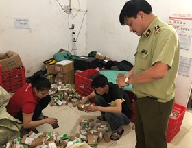 Sáng 2/4, Đội Quản lý thị trường (QLTT) số 17 và Đội QLTT số 11 - Cục QLTT Hà Nội phối hợp với Phòng An ninh kinh tế (Công an TP Hà Nội) bắt quả tang cơ sở sản xuất nước giặt, nước rửa chén bát, tinh dầu thơm có dấu hiệu giả mạo nhãn hiệu Dnee của Thái Lan.