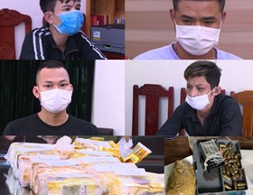 (THPL) - Nguồn tin từ Công an tỉnh Thanh Hóa cho biết, Phòng CSĐT về tội phạm Công an Thanh Hóa vừa bắt quả tang 4 đối tượng trong đường dây vận chuyển, mua bán trái phép chất ma túy từ Lào về Thanh Hóa tiêu thụ. Tại chỗ, lực lượng Công an đã thu giữ: 10 kg ma túy đá, 7 điện thoại di động, 1 xe ô tô taxi BKS 36A - 170.44, gần 600 triệu đồng tiền mặt, 1 khẩu súng quân dụng.
