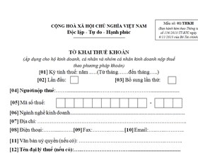 Tờ khai thuế khoán (Áp dụng cho hộ kinh doanh, cá nhân và nhóm cá nhân kinh doanh nộp thuế theo phương pháp khoán) mẫu số 01/THTK (Ban hành kèm theo Thông tư số 156/2013/TT-BTC ngày 6/11/2013 của Bộ Tài chính).