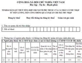 Tờ khai đăng ký thuế tổng hợp cho người phụ thuộc của cá nhân có thu nhập từ tiền lương, tiền công thông qua cơ quan chi trả thu nhập mẫu số 20-ĐK-TH-TCT (Ban hành kèm theo Thông tư số 95/2016/TT-BTC ngày 28/6/2016 của Bộ Tài chính).