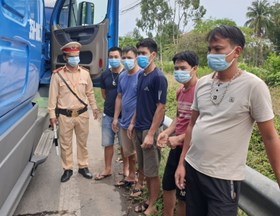 (THPL) - Chiều 13/6, Trung tá Phạm Hồng Hải - Trưởng trạm Cảnh sát Giao thông cửa ô Hòa Nhơn (Phòng Cảnh sát Giao thông Công an Đà Nẵng) cho hay, đơn vị đã lập biên bản đối với tài xế xe container về lỗi chở quá số người quy định trong buồng lái.