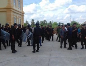 Sau khi Tòa án tuyên án băng nhóm Tân “móp”, rất đông người nhà của các bị cáo kéo ra sân tòa la hét, chửi bới... buộc lực lượng cảnh sát cơ động phải vào can thiệp.
