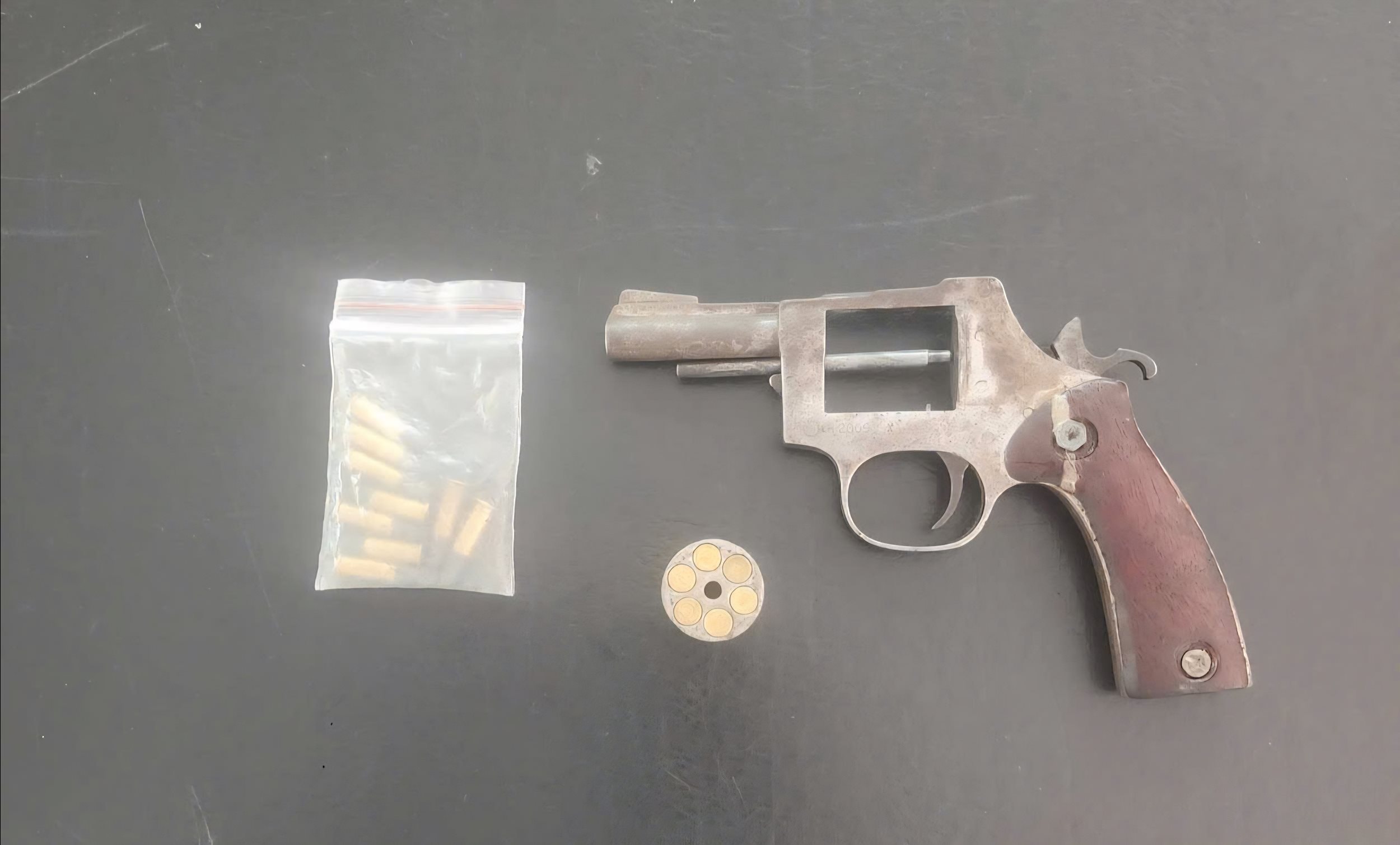 Súng và đạn thu giữ của Lê Thái Hà, trong đó có 6 viên ở trong hộp tiếp đạn.