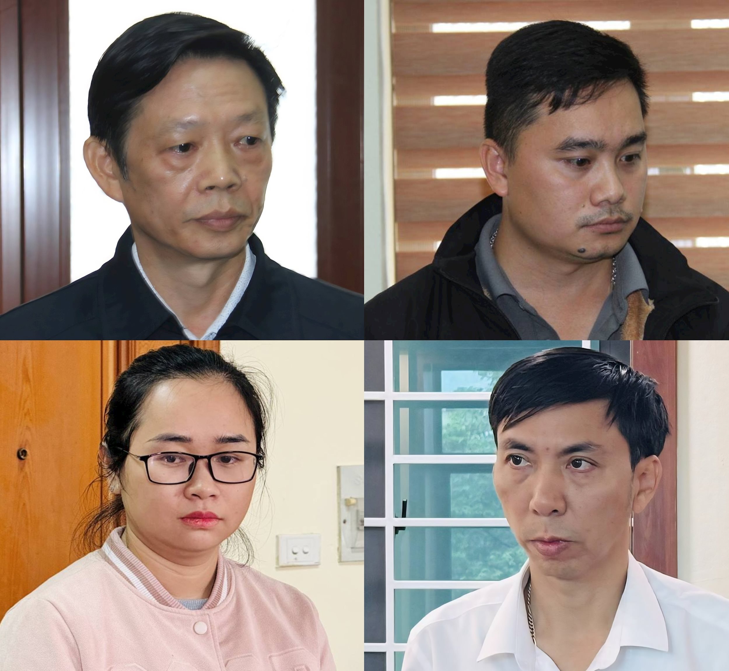 Các đội tượng bị khởi tố Phạm Khắc Phương (áo đen bên trái), Vũ Tuấn Anh (áo đen bên phải), Nguyễn Thu Hà (áo hồng), Cao Kim Cương (áo trắng).