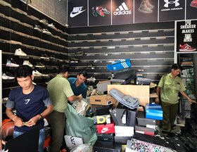 QLTT tỉnh Bình Dương vừa phát hiện một cửa hàng bán hàng trăm đôi giày có dấu hiệu giả thương hiệu đình đám Nike, Adidas.